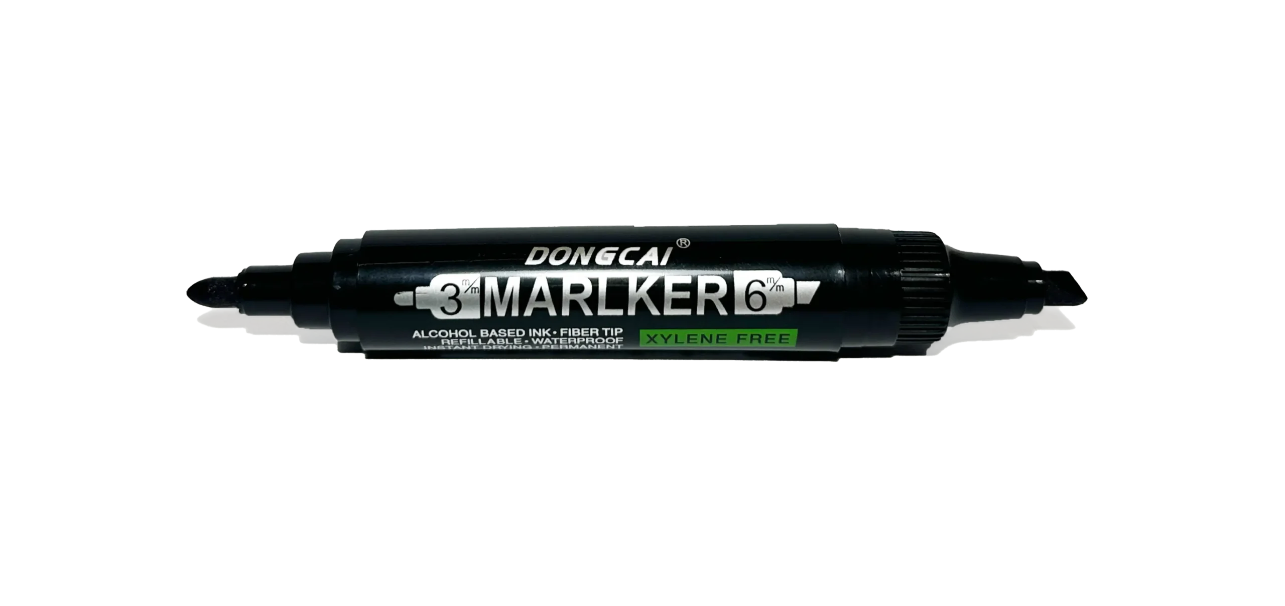 Marcador de aceite de alta resistencia con doble punta: una gruesa de 6 mm y una delgada de 3 mm para trazos precisos o marcados firmes.